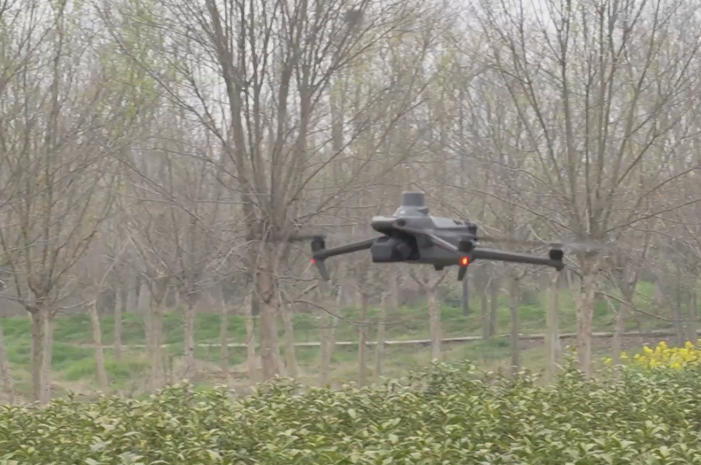 上午九點,南京林業大學的學生們正在調試無人機設備。隨著螺旋槳的轟鳴聲響起,一架搭載著深度相機的無人機騰空而起,開始了當天的茶園巡檢任務。